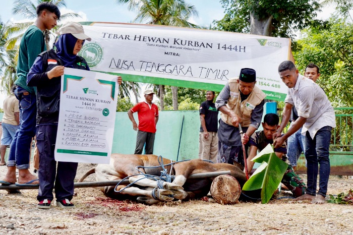 Tim Dompet Dhuafa melaksanakan Tebar Hewan Kurban (THK) di Desa Wini, Kecamatan Insana Utara, Kabupaten Timor Tengah Utara (TTU), Nusa Tenggara Timur (NTT), pada Iduladha 1444 H, Kamis (29/6/2023). (Foto: Dompet Dhuafa)1